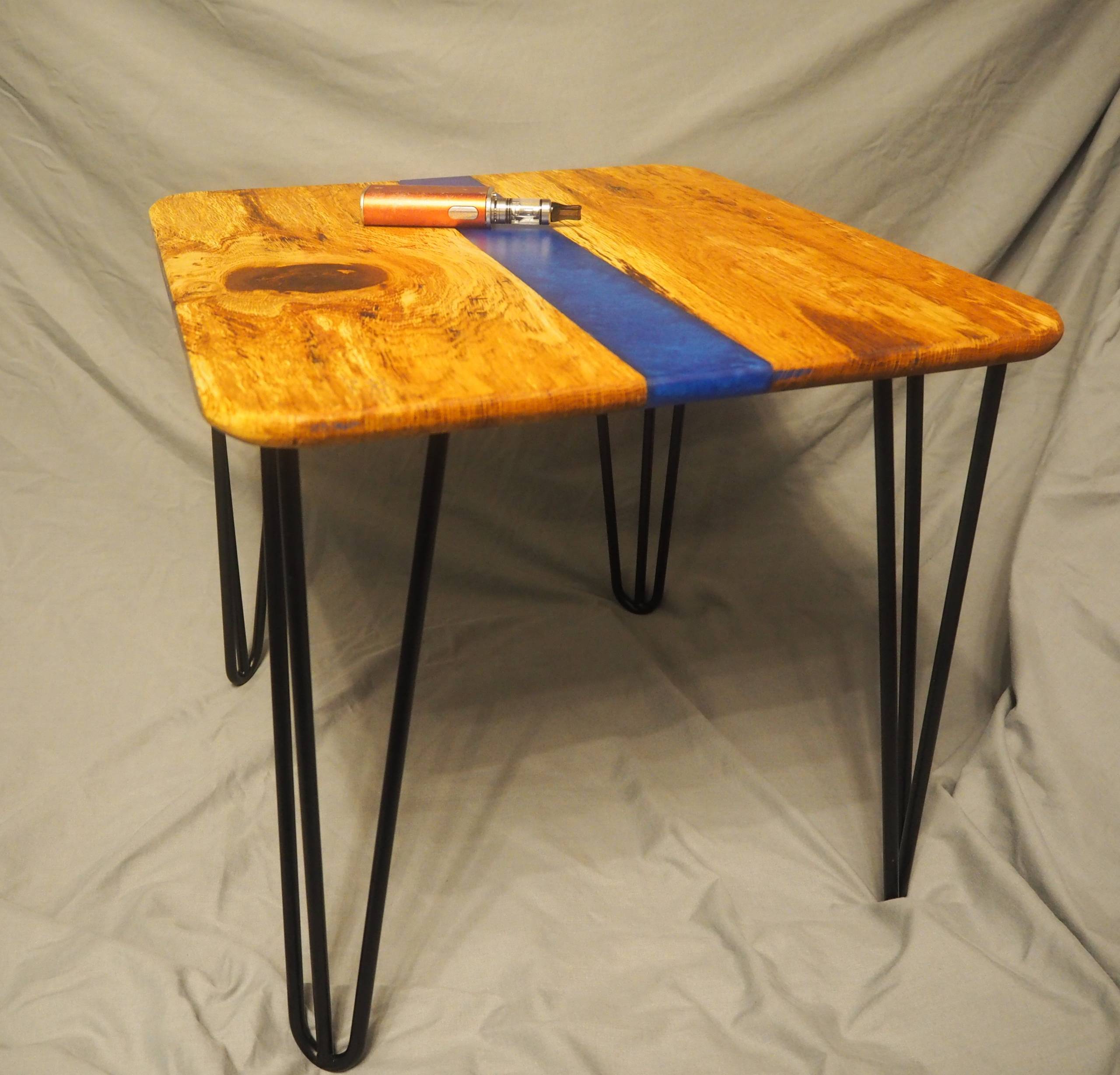 We’re absolutely thrilled with our table. It looks beautiful. The flower in the middle, which was from the rose bush of our last house looks like it’s still growing rather than dried and held in resin. The oak piece was stunning on its own and the blue really enhances it. Tom was great throughout the process, we had a few chats during the design stage and he kept us in the loop as he started crafting it when we needed to make decisions. He also sent updates until we told him to stop and that we’d wait to see the finished table in person. Would highly recommend if you’re looking for a piece from a craftsman.