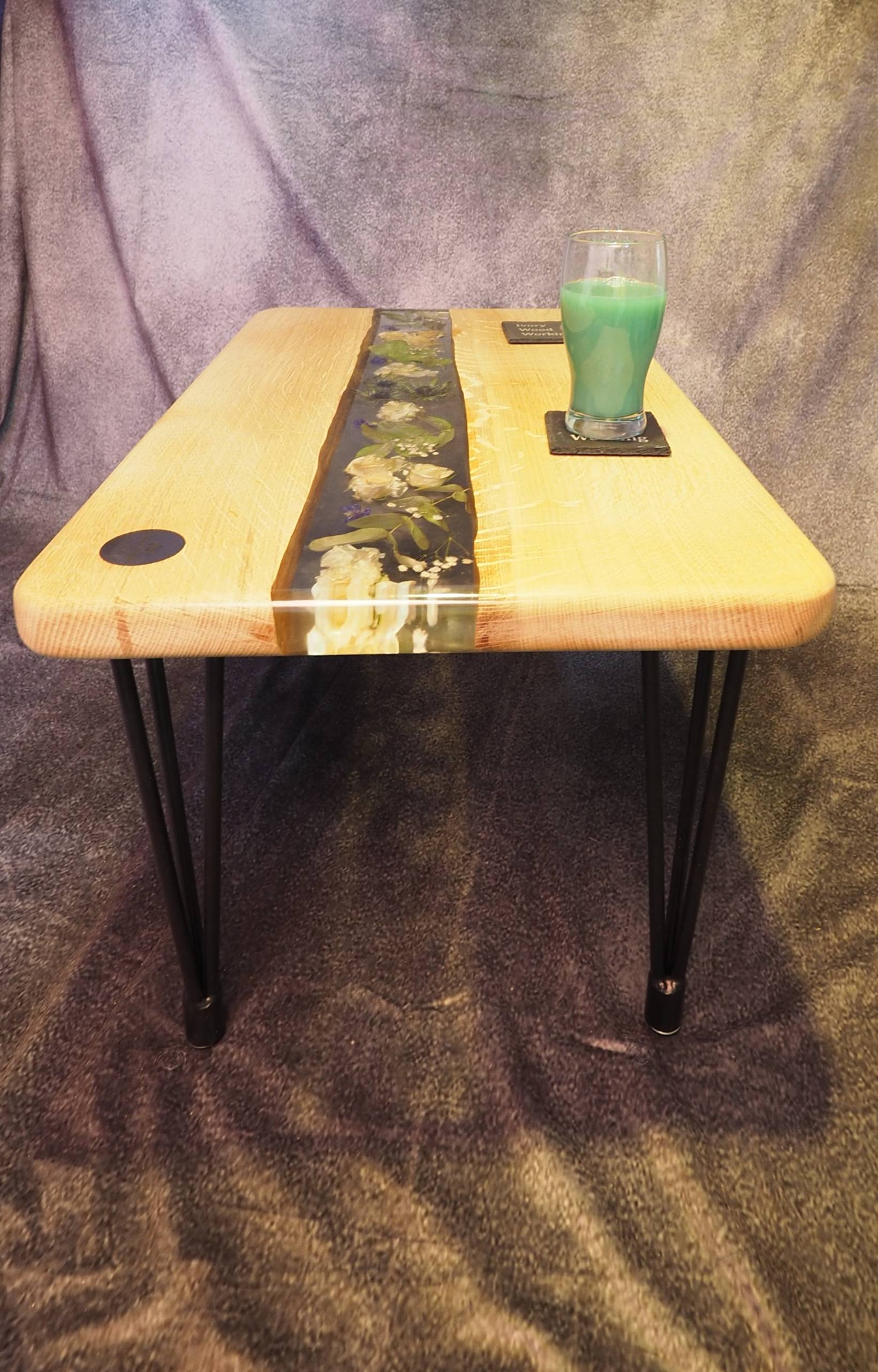 From a young age I’ve had a passion for building and crafting things by hand, and have taught myself carpentry skills, which have now developed to include resin work. My latest resin project was a dried wedding flower bouquet set in a river of clear resin between live edge Oak, which can be seen in my portfolio.